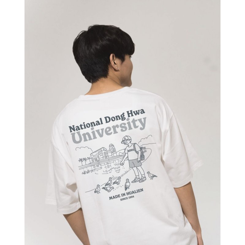 NDHU校園日常圖鑑寬版短T_經典白